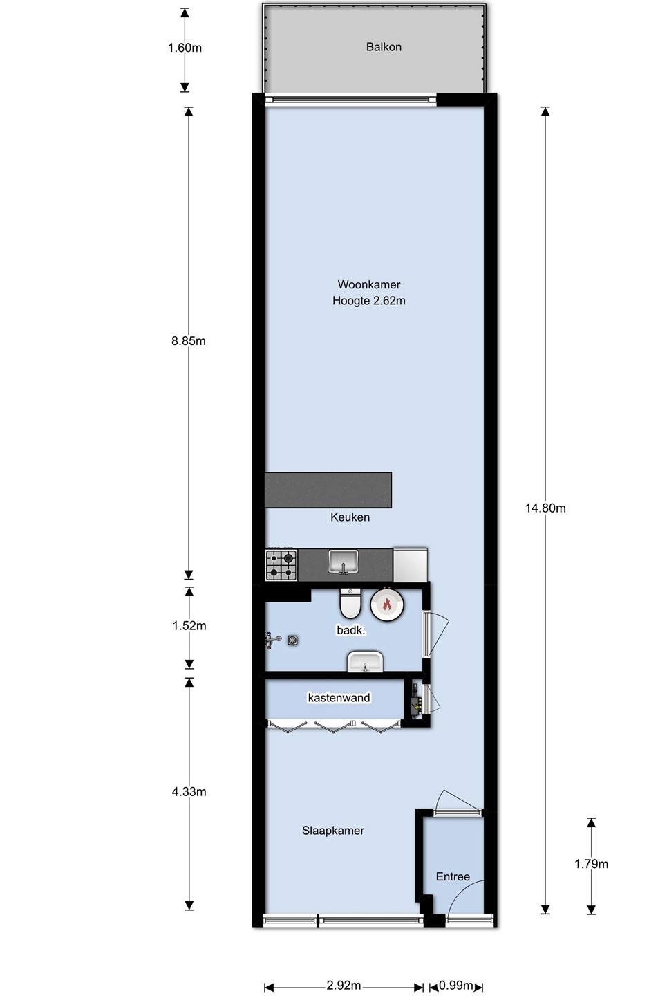 Dit bijzonder praktisch ingedeeld 2-kamerappartement is op de 3e verdieping.